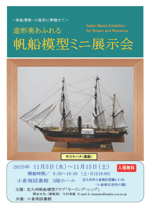 2024.10.22 | 小倉南図書館帆船模型ミニ展示会(11/8~11/14) |